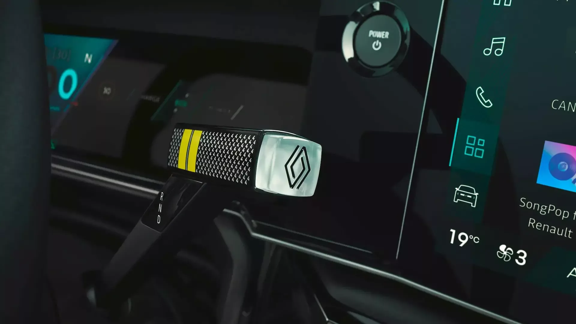 Gjør Renault 4 E-Tech electric til din egen! Det finnes et bredt utvalg av tilpasningsmuligheter, som for eksempel 3D-print@flins-tilbehør. Tilbehøret er produsert av Renault selv. Gjør bilen komplett med små og store sentrale oppbevaringsbokser eller velg din egen e-pop girknapp som passer perfekt til girspaken.