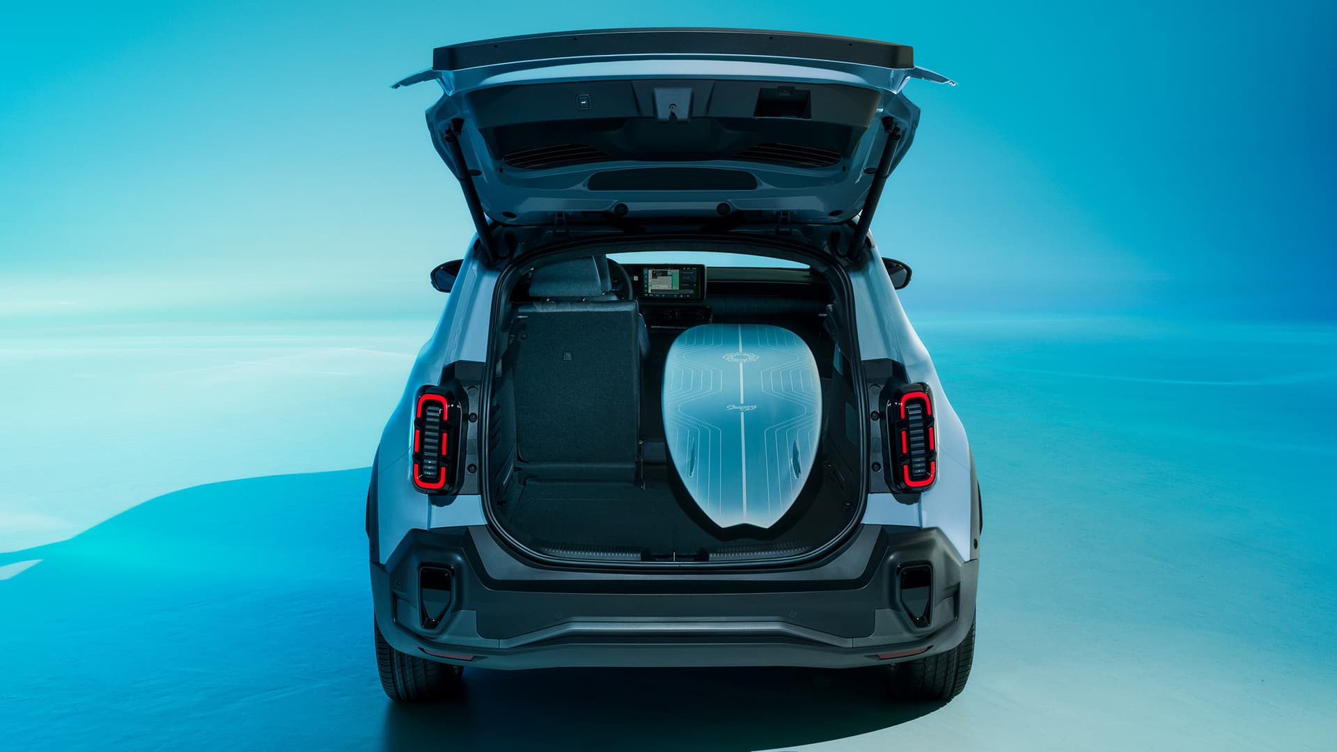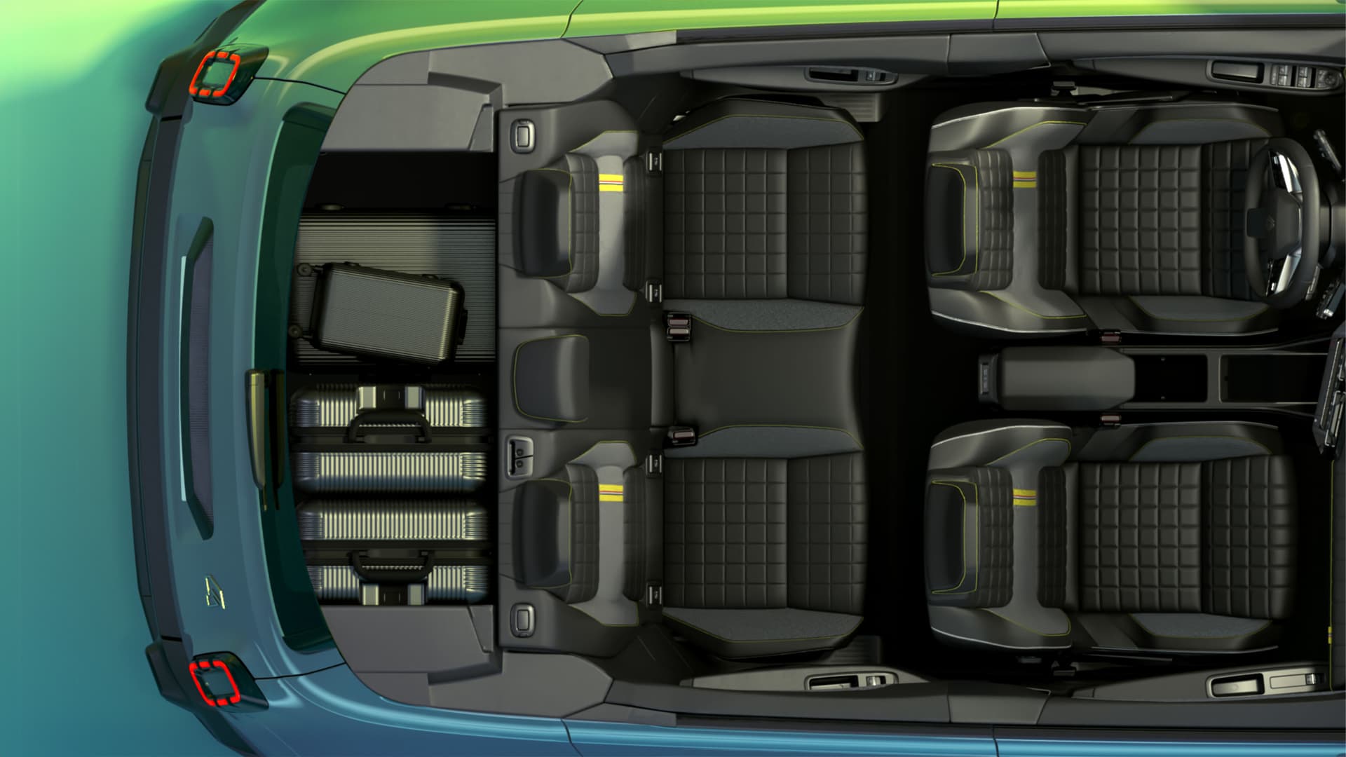 Renault 4 har et praktisk bagasjerom med lav lastekant, en stor åpning og hands-free elektrisk bakluke1. Med baksetene nede får du inntil 1 405 liter bagasjerom.